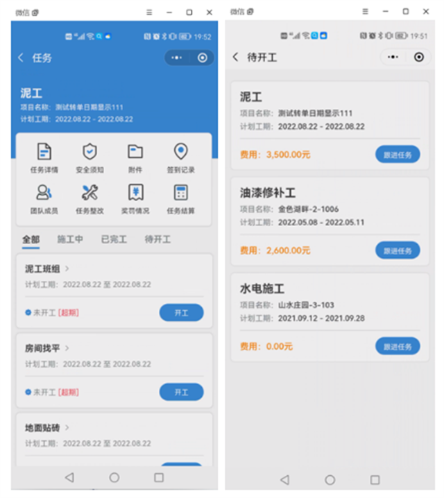 1、工人在線直接接單、開工、做工地播報(bào)、申請用工用料、結(jié)款。以前項(xiàng)目經(jīng)理制不可控,現(xiàn)在簽單后,裝修公司產(chǎn)業(yè)工人管工期、管驗(yàn)收、管質(zhì)量,大大提高工地品質(zhì)。而且還實(shí)現(xiàn)管理層同步管控工匠、項(xiàng)目。