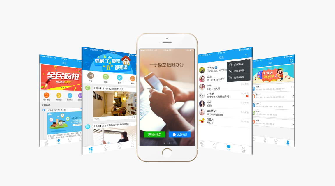 2015年,“互聯(lián)網(wǎng)+”成為社會各行業(yè)的熱點(diǎn),企業(yè)在“互聯(lián)網(wǎng)+移動應(yīng)用”方面的需求呈現(xiàn)爆發(fā)式的增長。搭乘“互聯(lián)網(wǎng)+”的熱潮,云立方也積極探索裝企的各種信息化可能。據(jù)了解,云裝天下APP V2.0是專門針對云立方ERP搭建的移動商務(wù)平臺,它不是簡單的將ERP內(nèi)容移動到手機(jī)端,作為云立方ERP的有效補(bǔ)充和完善,云裝天下APP V2.0將無法參與ERP管理和操作的最終客戶、設(shè)計(jì)師、材料員、項(xiàng)目經(jīng)理、監(jiān)理、工程經(jīng)理、業(yè)務(wù)員等,進(jìn)行快速整合,形成完整、高效、及時(shí)的商務(wù)社交圈,是實(shí)現(xiàn)遠(yuǎn)程對接公司業(yè)務(wù)、項(xiàng)目、售前售后、施工、管理等全方位應(yīng)用的高新技術(shù)移動互聯(lián)網(wǎng)解決方案。