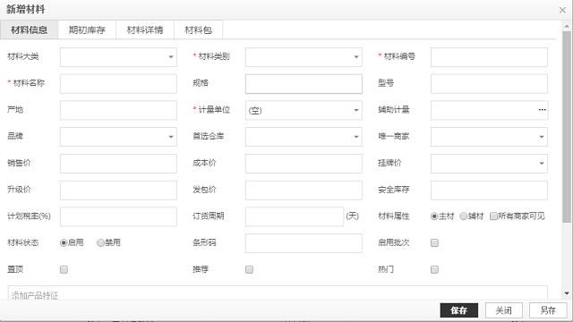 裝企在系統(tǒng)里的“材料寶典”錄入標準模式,包括材料大類、材料類別、材料編號、材料名稱等,材料員發(fā)起申購單時,可以直接選擇所需的材料,按需下定。如果遇到特別的材料,系統(tǒng)也支持自定義。