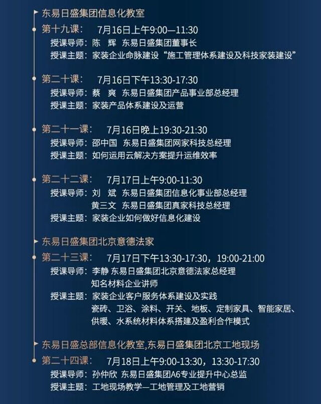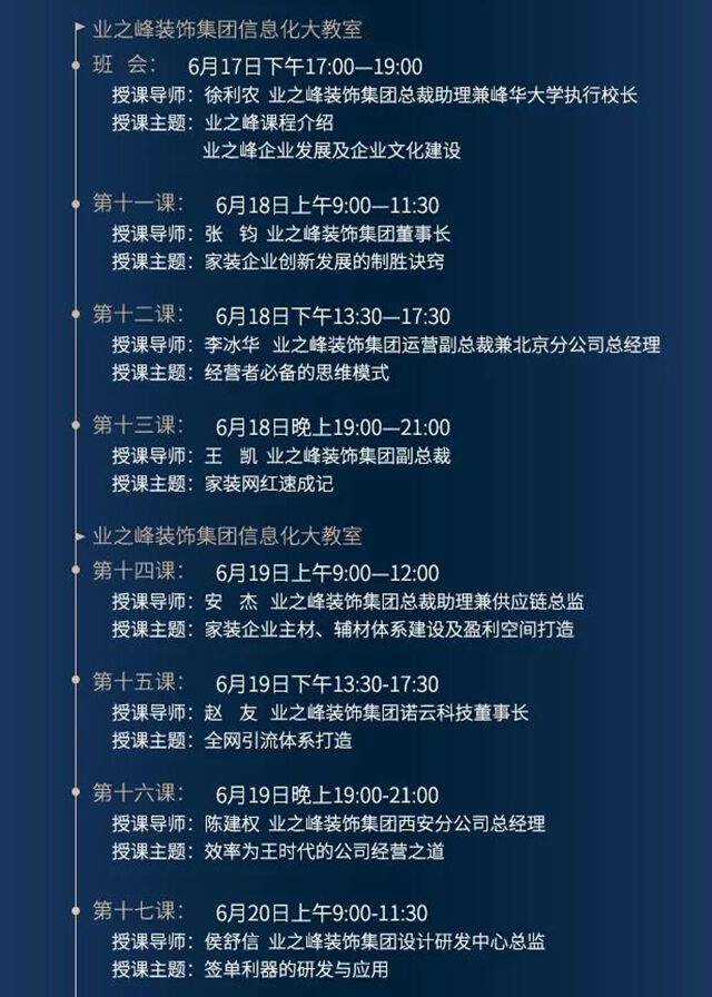 小云發(fā)現(xiàn)了一個(gè)行業(yè)信號(hào),想和大家分享分享。在今年4月,處于疫情期時(shí),“中國(guó)家裝企業(yè)高品質(zhì)生存發(fā)展成效班”誕生了。本以為是行業(yè)內(nèi)普遍的營(yíng)銷或培訓(xùn)課程,但一看師資,噢吼,發(fā)現(xiàn)事情可能并沒有那么“簡(jiǎn)單”。來(lái),先看看領(lǐng)袖企業(yè)家導(dǎo)師有誰(shuí):藝邦集團(tuán)(廣東星藝/華潯品味/名匠/九藝三星裝飾)創(chuàng)始人余靜贛、以及組成一支優(yōu)秀企業(yè)家導(dǎo)師團(tuán)隊(duì)、實(shí)戰(zhàn)派導(dǎo)師。