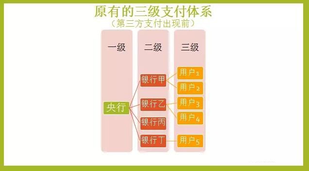 在第三方支付出現(xiàn)前,中國(guó)的支付體系是以央行為主導(dǎo),再加上銀行和用戶構(gòu)成的三級(jí)支付體系(如圖1)。不管是行內(nèi)支付還是跨行支付的交易信息都是對(duì)央行公開和透明的。掌握資金交易信息,是央行進(jìn)行反洗錢、貨幣調(diào)控和監(jiān)管的前提。