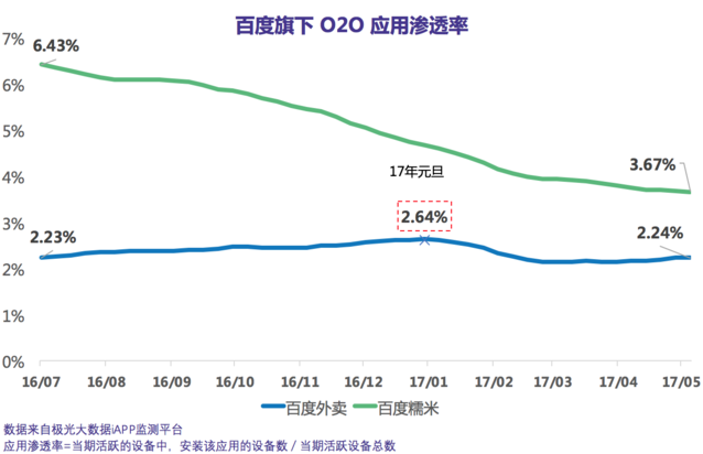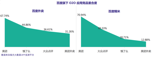 百度O2O應(yīng)用的體量依然巨大,用戶競品安裝率高