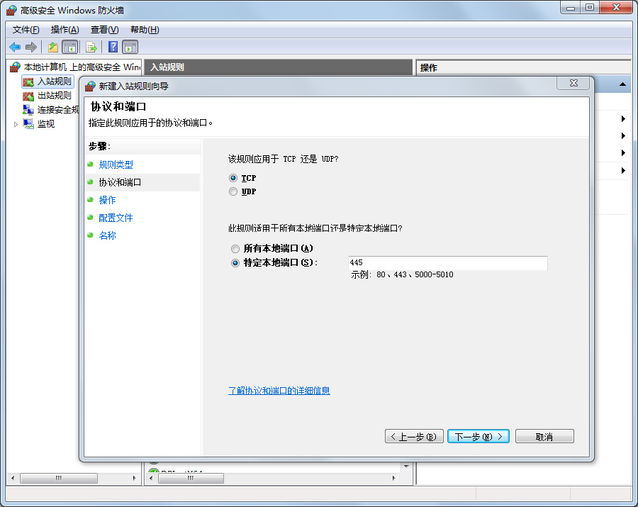 屏蔽Windows電腦445端口的方法:打開(kāi)管理工具-高級(jí)安全 Windows 防火墻,添加入站規(guī)則→TCP協(xié)議、特定本地端口(輸入445)→阻止連接→完成。即可防止最新的勒索蠕蟲(chóng)病毒。