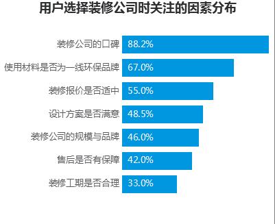 另外,根據(jù)2016年土巴兔官方網(wǎng)站調(diào)研,近9成用戶在選擇裝修公司時(shí),最為關(guān)注的一點(diǎn)是口碑,對(duì)裝修環(huán)保健康、裝修報(bào)價(jià)的關(guān)注度分別位居第二、第三。針對(duì)裝修用戶最為關(guān)注的口碑問題,已有互聯(lián)網(wǎng)家裝平臺(tái)實(shí)行解決之道。