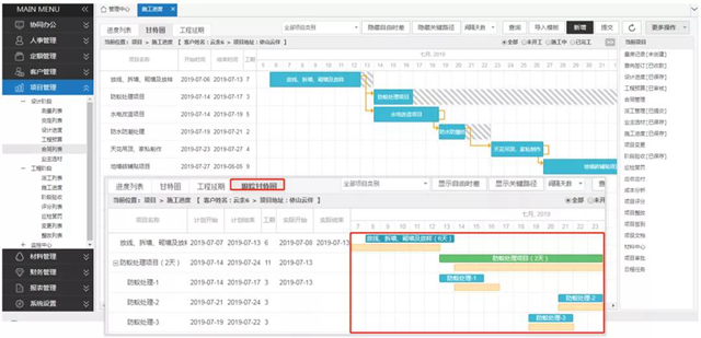 亮點(diǎn)2:施工計(jì)劃進(jìn)度甘特圖,可自定義項(xiàng)目施工進(jìn)度模板(整裝、二手房、商裝、暖通項(xiàng)目模板等)
