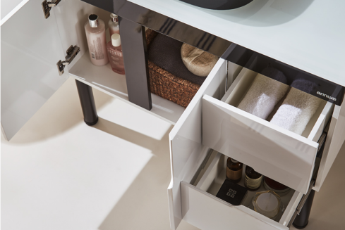 首先,選購金屬高腳款。利用高腳的設(shè)計,抬高柜底與地板的距離,直接化解了一般木制浴室柜容易受潮的問題。此外實金屬柜腳的“骨骼”堅實,輕松應(yīng)付面盆和柜體的“壓力”,其防腐、防潮的特性確保柜腳接觸水后不變形,而表面經(jīng)過涂層處理的柜腳,更是免除了水漬的侵擾。這樣子再也不怕潮氣入體,從而導致浴室柜走樣。