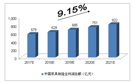 2017-2021年中國(guó)家具制造業(yè)利潤(rùn)總額預(yù)測(cè)